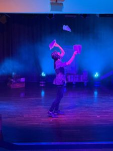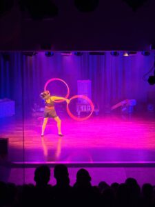 Mit minimaler Besetzung des Organisationsteams, minimaler Teilnehmerzahl, maximaler Flexibilität und Vorfreude lief dann doch das fast komplette Programm von gemeinsamen Workshops, gemeinsamer Trainingszeit bis hin zu gemütlichen Pausen mit Snacks und Getränken. Matthias Romir organisierte eine feine Show, Janus, mit Michael Zandl und Tom Henden, die den Zuschauer:innen die lang ersehnte Gelegenheit gab, den Alltag hinter sich zu lassen und in eine andere Welt voller Überraschungen abzutauchen – ein echtes Highlight. Selbst hinter die Kulissen durften die begeisterten Zuschauer:innen nach Ende der Show schauen!