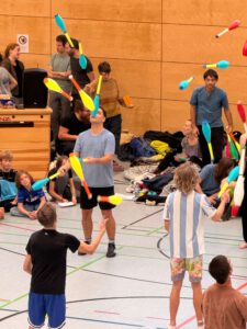 Unter dem Motto „Künstlerische Intelligenz“ haben sich am Wochenende vom 10.11. – 12.11.2023 ca. 800 Jongleure, Artisten, und Bewegungskünstler zu einer Jonglierconvention in der Wilhelm-Löhe-Gesamtschule zusammengefunden – nach fast einem Jahr Planung und Vorbereitung durch das Orga-Team, eine Gruppe von 15 conventionbegeisterten Jongleuren und Jongleurinnen.