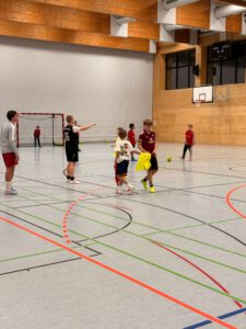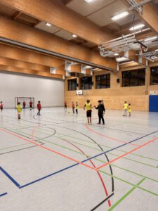 Nach einer kurzen Eingewöhnungsphase kam unser Team ab der zehnten Minute richtig in Fahrt. Das erste Tor fiel durch Sebastian, der den Ball technisch anspruchsvoll im gegnerischen Netz unterbrachte. Fabian Kaillinger legte mit zwei weiteren Treffern nach und sorgte für klare Verhältnisse. In der Defensive standen Dejan, Axel und Andrii sicher und konzentriert – sie machten dem gegnerischen Angriffsspiel das Leben schwer und zeigten großen Einsatzwillen.