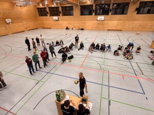Über mehrere Tage hinweg verwandelten sich die Hallen und Räume der Wilhelm Löhe Schulsportgemeinschaft e. V. und der Wilhelm-Löhe-Schule in einen offenen Trainings- und Begegnungsraum: Jonglage in all ihren Facetten, Akrobatik, Einradfahren, Passing, Workshops für Anfänger wie Fortgeschrittene – überall war spürbar, wie sehr der gemeinsame Sport Menschen verbindet.